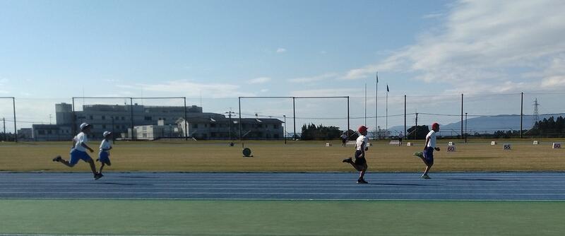 今日は、総合運動公園陸上競技場で、市陸上記録会が開催されました。市内小学校5・6年生(6年生のみ参加の学校もある)が参加しました。各学校、50mハードル走、100m走、走り幅跳び、走り高跳び、ソフトボール投げ、リレーにエントリーし、記録を競いました。本城小学校も少数精鋭で臨み、力いっぱいの姿を見せてくれました。
