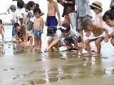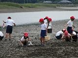 まず、干潟についての詳しい説明を聞いて、その後は実際に自分たちの目で干潟の様子や生き物を観察しました。みんな生き生きと活動していました。
