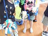 ペットボトルを振ると、水の色が白や赤になりました。赤団、白団決定です。