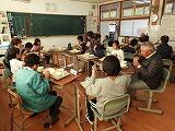 給食時間は、各学級に高齢者の方々を招いて、楽しく会話をしたり、児童が学校の様子を伝えたりして一緒に給食を食べました。