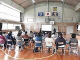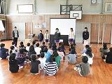今回は、全校児童と保護者の皆様の参加による防災学習を実施しました。串間市役所の危機管理課の職員の方にご協力いただき、災害に関する基本的な内容や留意すべき点などを詳しく教えていただきました。