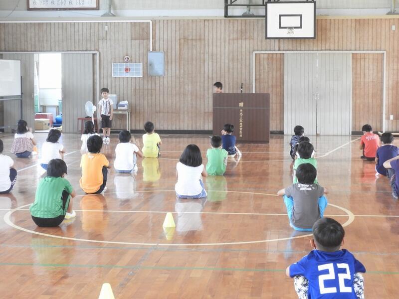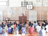 初めに校長先生の話でした。新型コロナウイルス感染症対策の話や本の話をされました。実際に「ざんねんな生き物」を本を紹介されたり、動物のクイズを出されたりと、興味深い話でした。