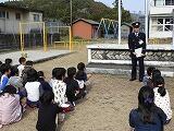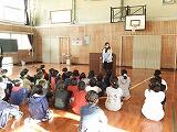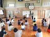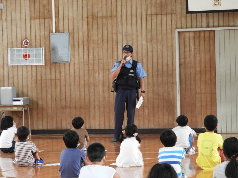 訓練後は、ソーシャルディスタンスを保ちながら体育館に集合し、警察の方の話(はちみつじまん」・「ひまわり」等の話を聞きました。