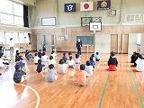 朝の活動の時間を利用して、全校児童が体育館で寒さに負けずに元気に運動しています。いろいろな運動が楽しくリズミカルに構成されており、児童は得意な動きやそうでない動きなど一生懸命に頑張っています。