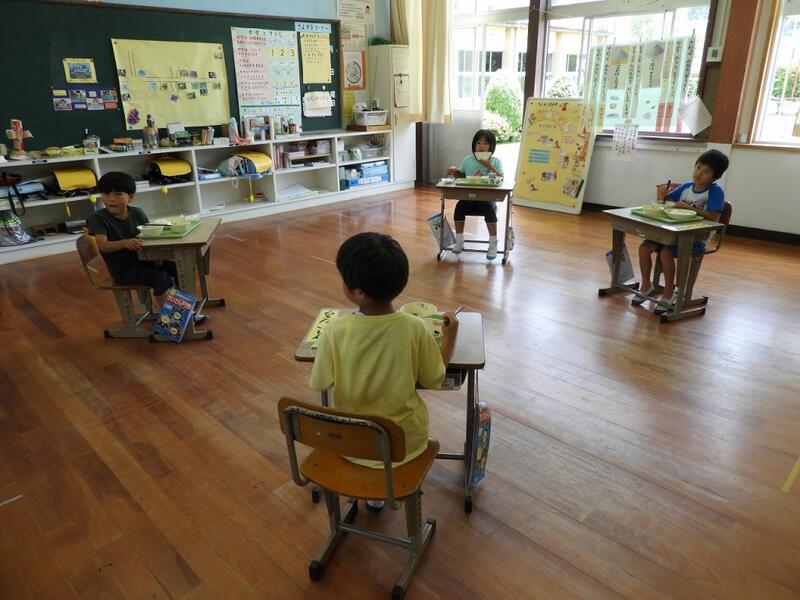 みんなの大好きなカレーでした。1年生もおいしそうに給食を食べていました。しっかり食べて、暑さに負けないようにしましょう。