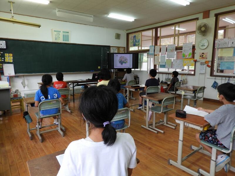 5・6年生も、1・2年生も、先生の資料や話を、真剣に見たり、聴いたりしながら授業に取り組みました。