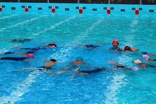 子どもたちは、久しぶりの水の感触を確かめながら、気持ちよさそうに水慣れの運動や水泳を楽しみました。