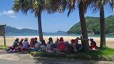 椰子の木の下で、お弁当に舌鼓。