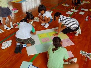 遠足時に、一緒に活動した3つの班で、協力しながら活動しました。