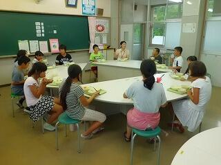 特別授業が終わり、児童たちと食をしながら、交流会をしました。