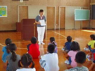 全校児童で行く遠足などで、いっぱい楽しんでほしい事と、海洋教育の一環でもあるので、いろいろ気付いたことはメモしてほしい事を話しました。