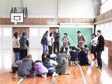 全校児童が元気に石波海岸に移動した直後に地震が発生し、児童の安全を最優先して学校へ引き返して校内遠足となりました。