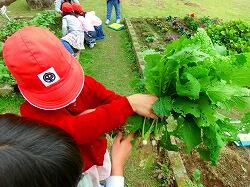 草を取ったり、ラディッシュや小松菜など、大きくなった野菜を収穫したりしました。大根やにんじんなどはまだ小さいので、これからの成長が楽しみです。