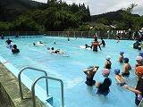 この日を心待ちにしていた児童は、校長先生や体育主任の先生の話の後、準備運動を行い、全員がはじけるような笑顔でプールに入っていきました。