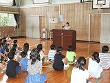 まず、家庭教育学級主催の教育講演会を開催しました。宮崎ライフセービングクラブの藤田様に海に関する内容やライフセービング活動についての興味深い話をしていただきました。海洋教育として、全校児童も参加していましたので、子ども達にもよい刺激となりました。