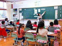 3月1日(金)は、本年度最後の参観日でした。1年生は、国語の自作物語の発表、2年生は生活科町探検をもとにした自作カルタ、3~6年生は、外国語での親子会話など授業がありました。