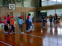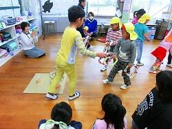 交流会では、一緒にじゃんけん貨物列車、輪投げ、だるまさんがころんだ等の交流ゲームをしたり、読み聞かせ、授業参観、3・4年生が図工遊びで造形遊びで作った段ボールのひみつ基地で遊んだりと、楽しい交流ができました。