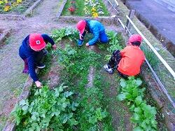 12月20日、明日の2学期終業式前に、1・2年生は学級園の整備をしました。