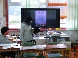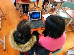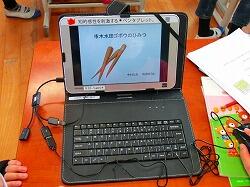 今回、3年生から6年生はタブレットPCを用いてデータをワイヤレスで飛ばして発表を行うということに取り組みました。発表練習時に発表内容の訂正や構成変更が容易にでき、よりよい発表に仕上げていくのに効果的でした。