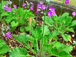 サクラソウの間に、つくしが顔を出していました。
