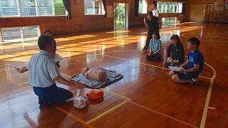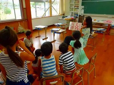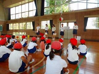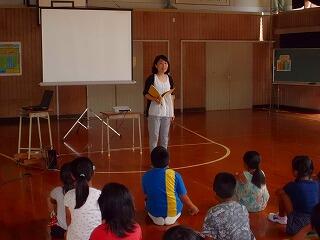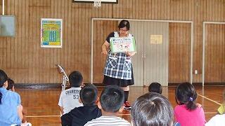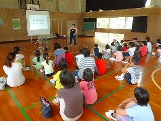 日南保健所から「野中さん」「黒木さん」「稲澤さん」「花田さん」の4人、全校児童、職員6人が参加しました。