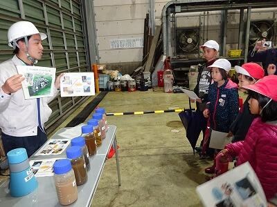ここでは、原料となる芋のカスが肥料になったり、メタンガスを作って電気に変わったりすることの説明を聞きましたが、児童たちはその工場の仕組みや広さに驚いていたようでした。