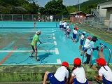 この作業が終わり、プールに水が入ると、いよいよプールでの水泳の学習が始まります。