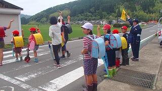 その後は、実地指導で実際に登下校する道路の横断歩道に出て、自分達の歩き方を再確認しました。