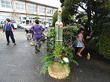 12月26日(木)の午後にPTA三役や保護者の方々で正門に設置する門松づくりを行いました。大人の方だけでなく参加してくれた児童も、のこぎりで竹を斜めに切ったり、土を運んだり、飾りをつけたりしてくれました。地域の方にも指導していただきながら、約2時間ほどで立派な門松が出来上がり、正門の両脇に設置していただきました。