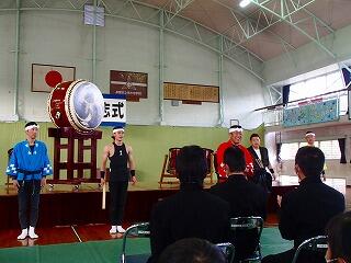 何事も体験する 事などを告げ、中学生が太鼓の演奏に挑戦しました。