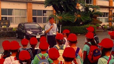 全校児童で行く遠足などで、いっぱい楽しんでほしい事と、海洋教育の一環でもあるので、いろいろ気付いたことはメモしてほしい事を話しました。