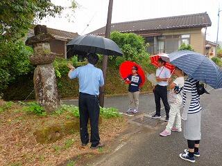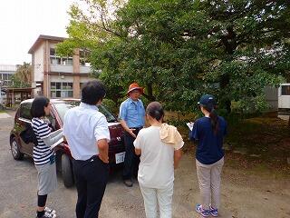 コースとしては、学校から市木神社、郡司部の集落、石原、ハヶ谷と石波の海岸樹林を見て回りました。11月には串間市内の児童を、本校児童が案内して行きますので、職員も一生懸命メモをとっていました。