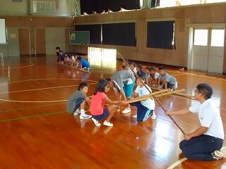 大人の柱松と全く同じ事を、力を合わせて行います。