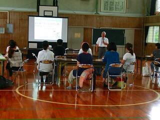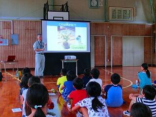 天気と海のこと、海はどんなふうに役立っているか、海を守るためにあなたがやっていることやできること、市木と海、森と海の関係など、科学的なアプローチで話をされ、海洋教育科や環境教育に取り組んでいる本校の学習内容とよく合った内容でした。
