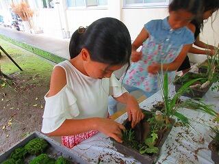 県の技能士会の皆さまにご協力いただき、4年生から6年生は、造園と印象彫刻の2つのコースでものづくり体験を行いました。