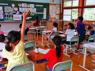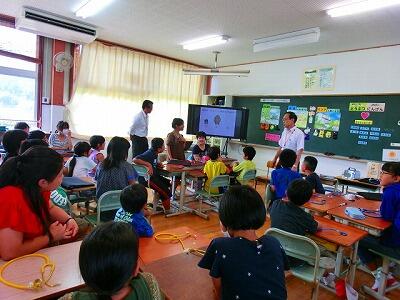 今回は、秋山小に移動して、秋山小、市木小、大平小の三校での集合学習です。