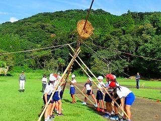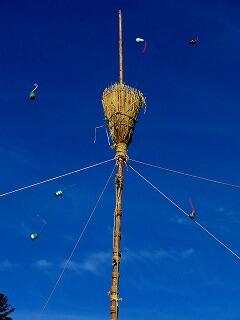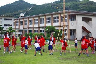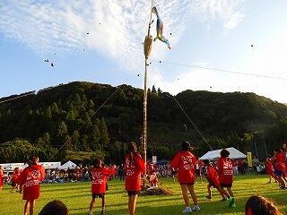 子ども柱松では、練習の成果がよく出て、大将軍のかけ声のもと、心を一つにして柱を立て上げることができました。