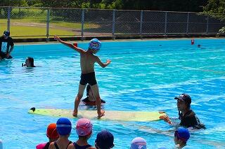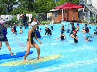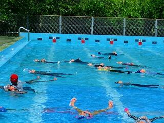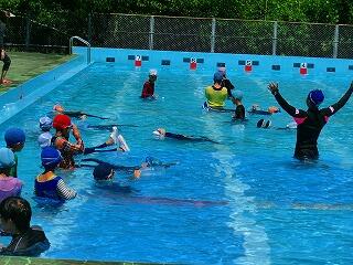 子どもたちは、久しぶりの水の感触を確かめながら、気持ちよさそうに水慣れの運動や水泳を楽しみました。