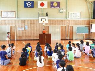式では、1年生と4年生の代表の人が1学期を振り返っての作文を発表してくれました。