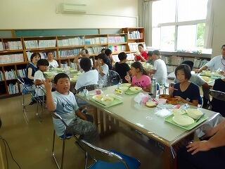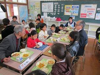 会食では、学習した場面の様子を思い出したり、地域の方の子どもの頃の給食の様子をお聞いたりしました。子どもたちから、地域の方へ感謝の気持ちを伝えるためのふれあい給食でしたが、今回の交流も地域の方から学ぶよい機会となりました。