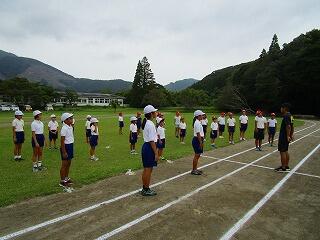 予行練習では、全員リレー、台風の目、全校ダンス、市木ソーラン節、保育所低学年の合同団技、綱引き、団対抗選抜リレーを中心に行いました。