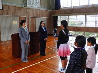 2人の先生の挨拶後に、6年生の「西岡 璃海」さんが歓迎の言葉を言ってくれました。
