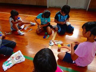 最初に先生が作り方の説明をして、その後、上級生が下級生に教えながら、制作活動をしました。