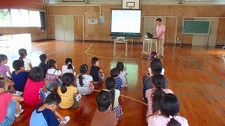 日南保健所から「野中さん」「黒木さん」「稲澤さん」「花田さん」の4人、全校児童、職員6人が参加しました。