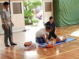 串間市消防署の職員の方にご協力いただき、心肺蘇生(胸部圧迫)の仕方やAEDの使い方及び熱中症の予防について話していただきました。