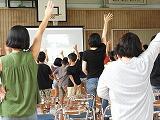 その後、授業の様子を参観していただきました。子ども達が元気に学習に取り組んでいる様子を参観されて、委員の皆様は終始笑顔でした。