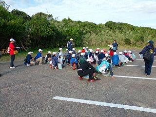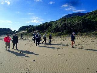 次に風光明媚な石波海岸をみんなで歩き、アカウミガメの孵卵場所に向かいました。