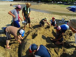 砂の造形では、思い思いに砂をうまく使って造形作品に挑戦していました。