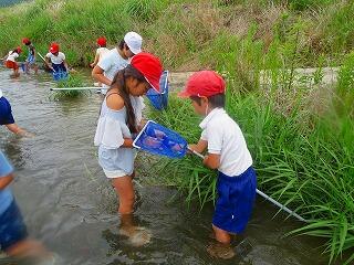 子どもたちは、毎年実施しているので、慣れた手つきで調査を実施することができ、あちらこちらで、「ヘビトンボ発見!」、「カニがいた」、「エビがたくさんとれた」という声が上がりました。 ※ 詳しくは、「環境教育・海洋学習」のページへ