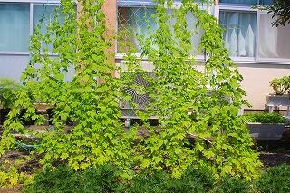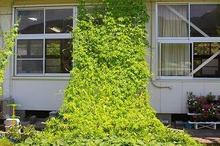 グリーンカーテンによる日陰で教室などを涼しくするという目的です。